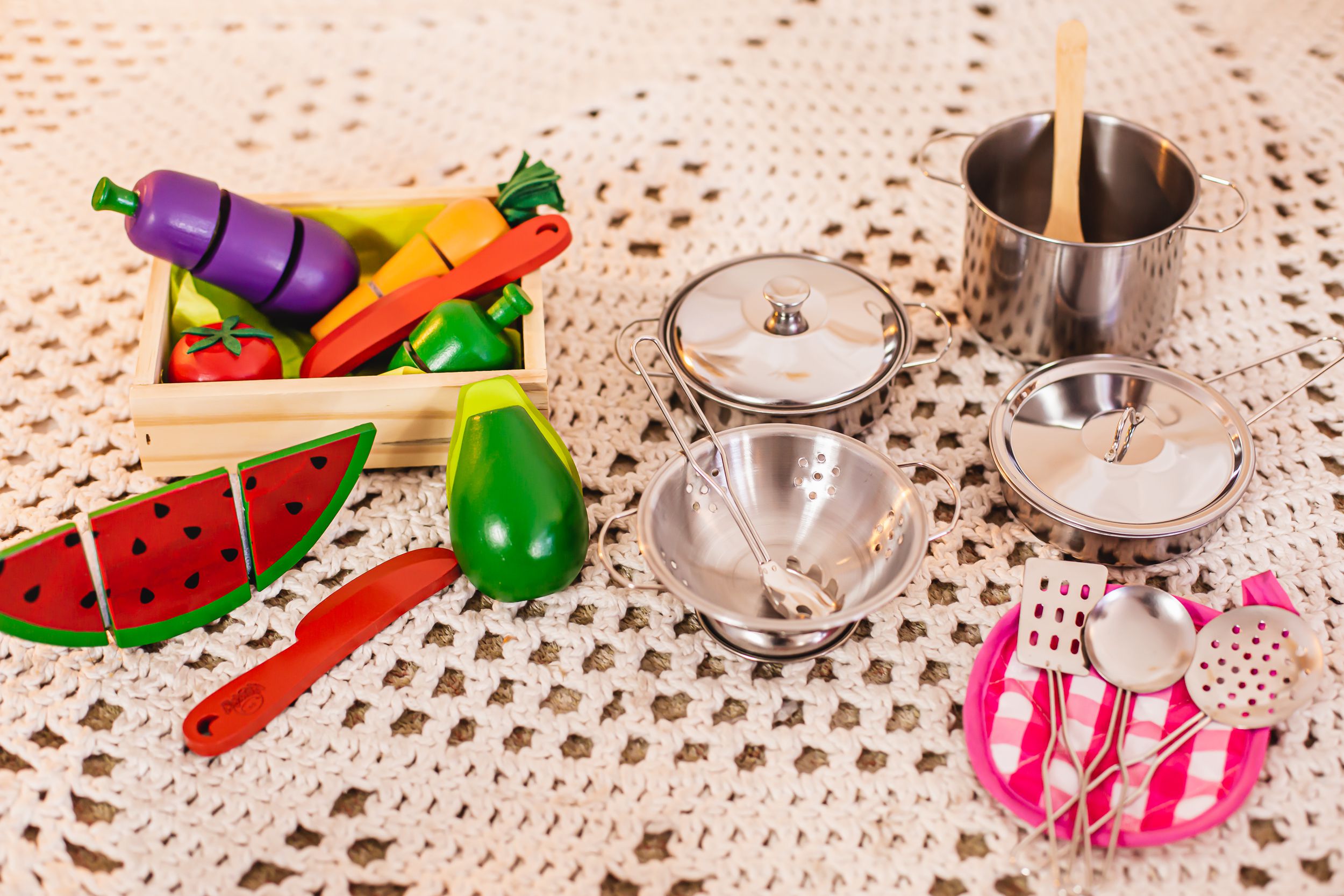Contém: 6 peças (1 tomate, 1 cenoura, 1 pimentão, 1 berinjela, 1 faca e 1 caixa).