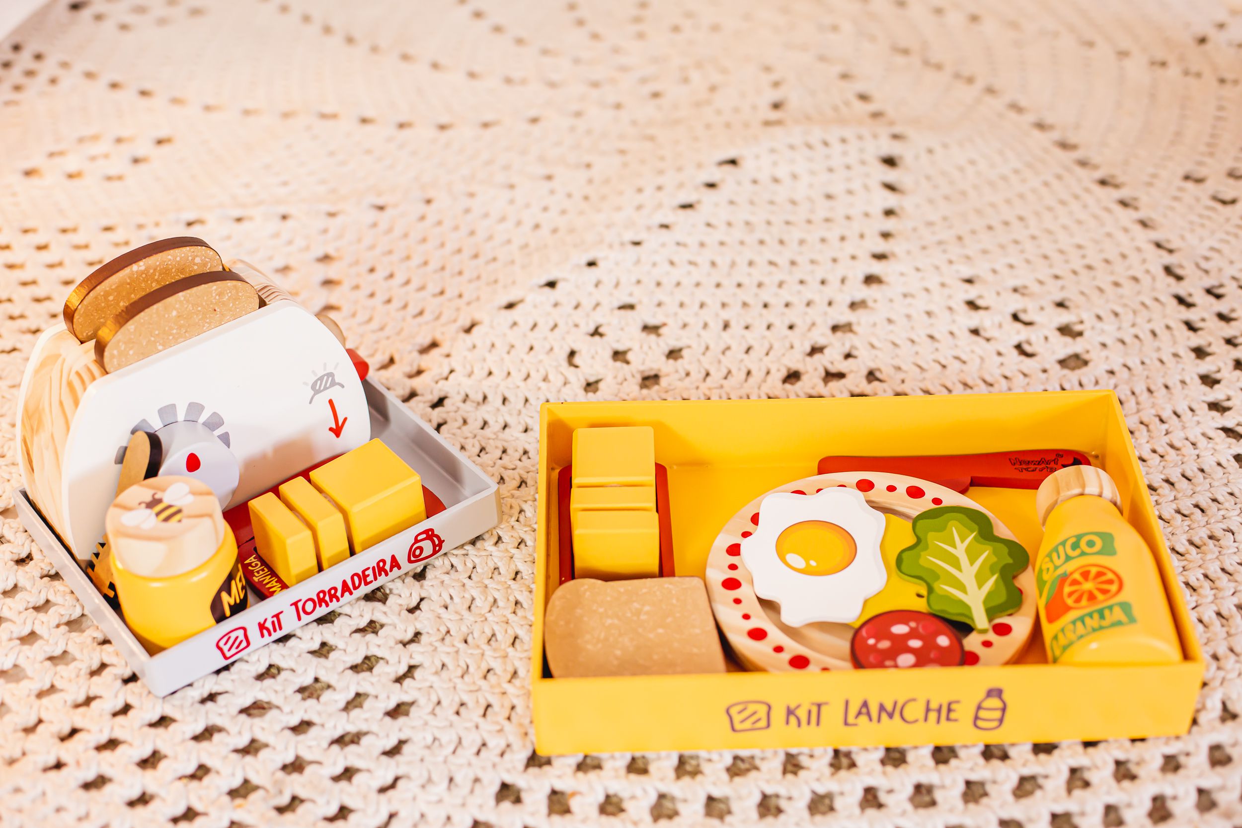 * 1 kit torradeira: 1 torradeira, 2 pães, 1 mel, 1 faca, 1 manteiga.